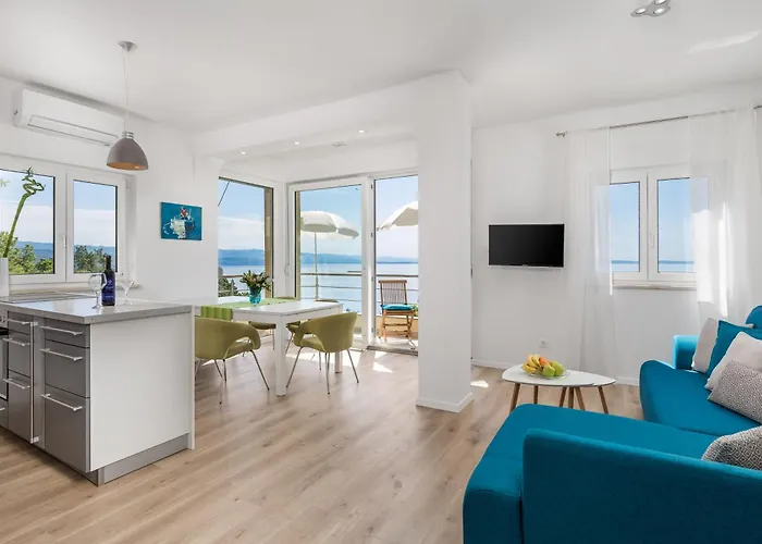 The apartment lies in the vicinity of the super public bath "Tomasevac Beach". The centre of Opatija is reachable within a 10-minute walking distance. The Lungo Mare promenade is situated a mere 1.2 km from the 60 m² apartment.
